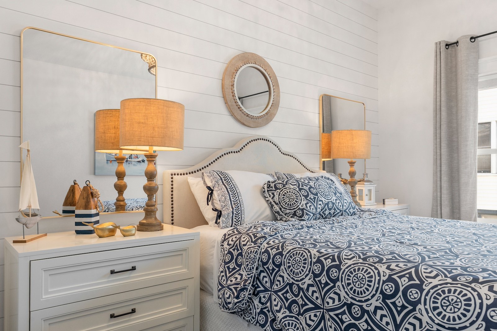 Designer-furnished rooms with natural light, soft bedding, and ocean air.