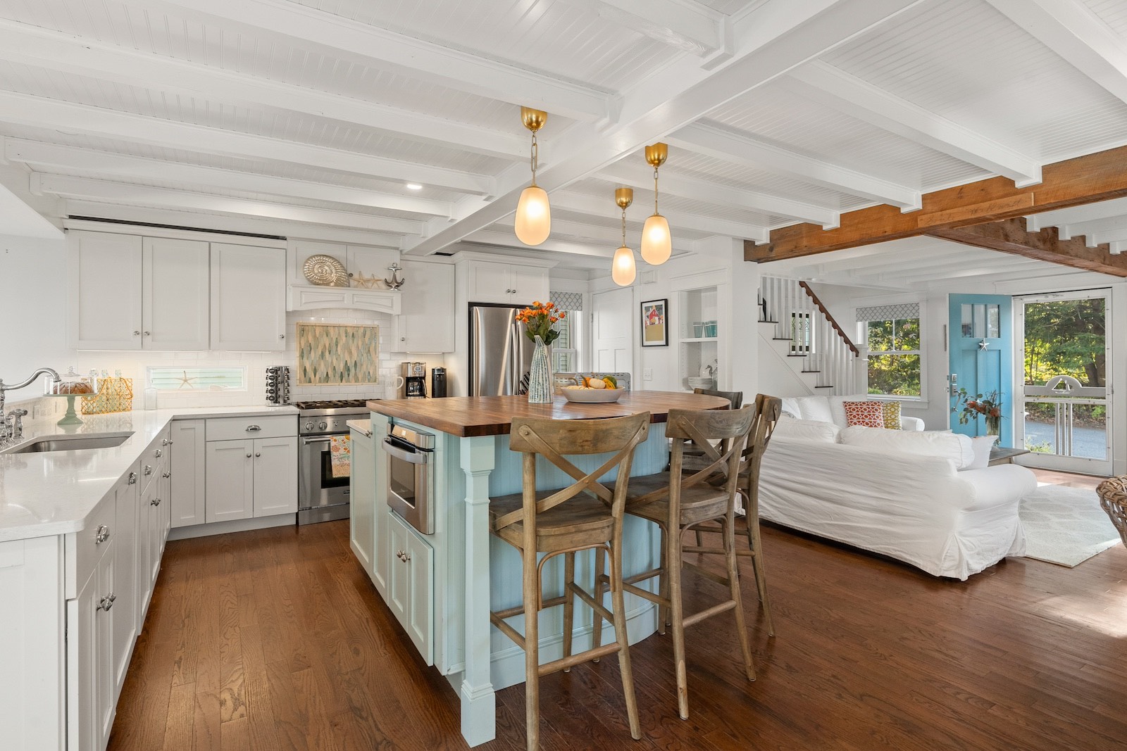 Inside, light-filled rooms showcase curated furnishings from Pottery Barn and Restoration Hardware, paired with high-end linens and warm, inviting textures. The open-concept living and dining spaces flow seamlessly into a designer kitchen—while upstairs, four spacious bedrooms and luxurious bathrooms create a private sanctuary for longer stays.