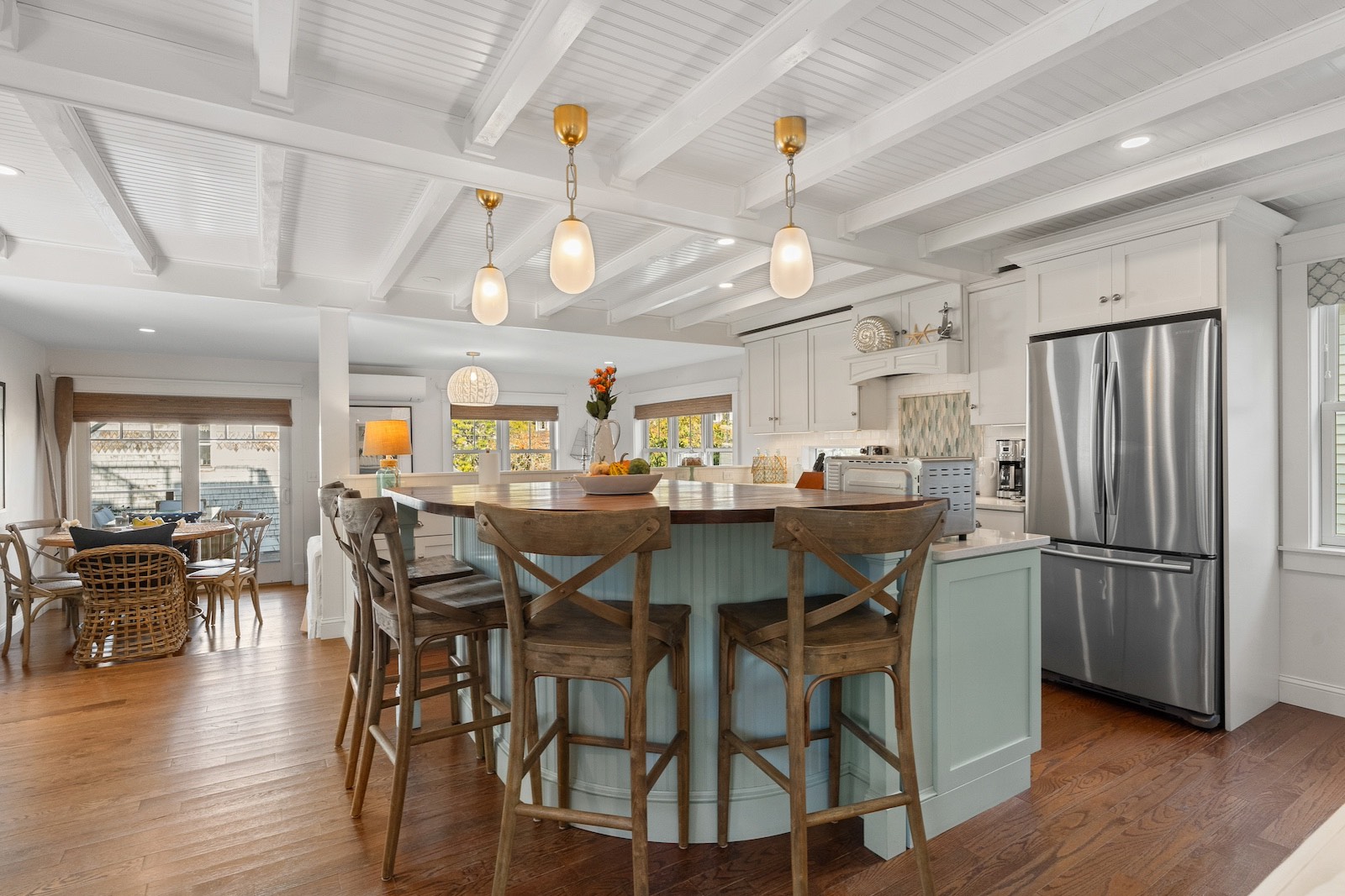 Modern appliances, island seating, and warm dining spaces for easy meals and gatherings.